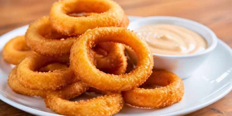 • Fry onion rings until golden brown and crispy.