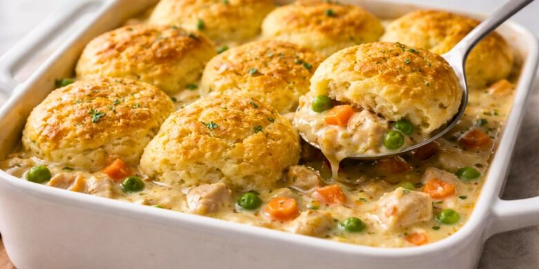This Ina Garten Chicken Pot Pie with Biscuits Recipe is creamy, comforting and full of rich flavor. It combines tender chicken, vegetables and a creamy sauce topped with fluffy biscuits instead of a traditional crust.