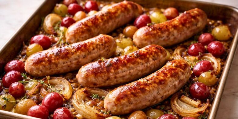 Many people love this Ina Garten Roasted Sausage and Grapes Recipe because it uses basic ingredients but creates a gourmet taste. The roasted grapes become juicy and slightly caramelized, while the sausage turns golden and flavorful.